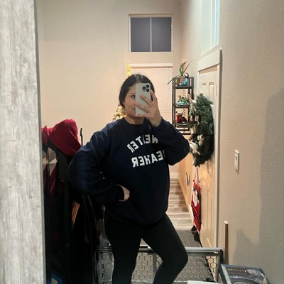 Stylish Cold-Weather Staple: Simple yet eye-catching graphic makes this navy crewneck an easy pairing with jeans or leggings; great for pumpkin patch outings, seasonal gatherings, or sipping hot cocoa under a warm blanket