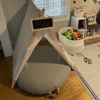 This little play tent comes with a cute little chalkboard for your kid’s name, a camp name, or a “No grown-ups!” warning. You can write on it with chalk and wipe it off with a small wet cloth.