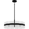 - Matte black finish pairs with unique white sand glass shades for a modern look
