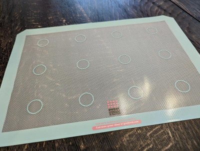 [This review was collected as part of a promotion.] The Sweet Creations 16"x11" Silicone Baking Mat (Light Aqua Blue) is a fantastic addition to my kitchen bakeware. The circle guides ensure that my cookies are evenly spaced and gives room for them to spread. I usually singe the bottoms of my cookies because I use foil but with the Sweet Creations 16"x11" Silicone Baking Mat the bottoms are perfect, and the cookies don’t get over-cooked. Once cooled, my cookies slide right off and don’t stick to the Sweet Creations 16"x11" Silicone Baking Mat at all which makes cleaning the mat fast and easy. I roll the mat up and store it in a drawer and it lays perfectly flat again when unrolled. I absolutely love this baking mat.
