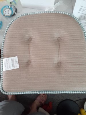 [This review was collected as part of a promotion.] I received the Houndstooth U-Shaped Memory foam chair pads in pistachio color. These cushions are pretty comfortable. They have a no slip grip on the bottoms enabling them to stay in place even if you move around a lot. These cushions make my chair quite a bit more comfortable to sit in. It's nice that you can put them on any chair and not have to worry about trying them on like other cushionsm