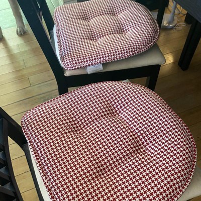 [This review was collected as part of a promotion.] Sweet Home Collection - Houndstooth U-Shaped 16 x 17 Memory Foam Chair Pad Red 2 Pack are really nice and comfortable. They have a really nice thick layer of memory foam that is covered with a red Houndstooth pattern. They have a skid-proof backing which keeps the cushion in place. The cushions are u-shaped and fit just about any chair and because their tie-less you can take them with you and have extra cushioning where ever you sit. They have very durable stitching and are machine washable. Sweet Home Collection - Houndstooth U-Shaped 16 x 17 Memory Foam Chair Pads uplift any room you place them in an I highly recommend them.