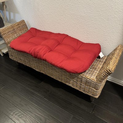 [This review was collected as part of a promotion.] I purchased this cushion online. The first thing I thought when it arrived is that the color is a little off from the online photo shown. I thought it would be more of a rust color, but it actually looks more of a red in person. So right away I knew it probably wouldn't work in my backyard. I wanted to use this with an existing bench/love seat i have. Unfortunately for me, it was a little bit too small. It's about 44" long, but i needed it to be a little bit longer. The depth of 19" was perfect. It's comfortable and soft and has just the right amount of stuffing. The tufts are made well and is think this should hold up. I am wondering if the color will fade in the sun though and how it will hold up outside. I did buy it during a promotion and it was an incredible deal! I received an incentive to write this review.
