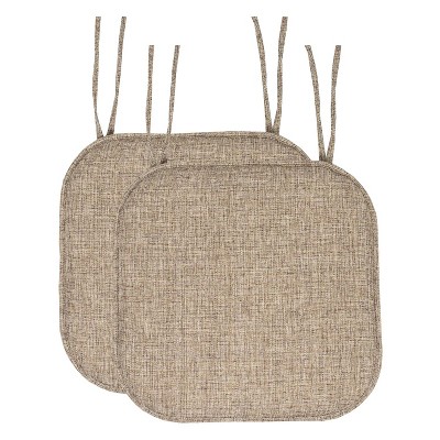 [This review was collected as part of a promotion.] These are covered in a nice vinyl...easy to wipe off all those accidental spills...the cushion is well stitches, the gripper bottom keeps the cushion on the chair, no sliding around, and it is a nice complementary color for my decor...highly recommend you consider this if you need to replace or add cushoons