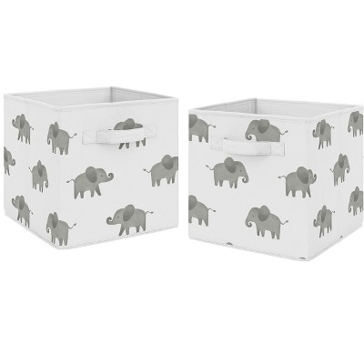 Jungle Collection fabric storage bins by Sweet Jojo Designs offer a stylish yet functional storage solution. What a perfect way to transform your organizational system in any room. This set of two foldable storage cubes can be used in most standard cubby-hole shelving furniture in a classroom, as stand-alone bins in a playroom, or collapsed to save space when not in use in your little one's bedroom. Please note: actual print may vary on bins featuring printed fabric. Sweet Jojo Designs creates various coordinating room accessories and decor for all of their children's bedding and nursery bedding set collections (These items not included). Features a multicolor watercolor jungle animals print