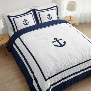 Sweet Jojo Designs Full/Queen Comforter Bedding Set Anchors Away Collection Blue and White 3pc - 1 of 4