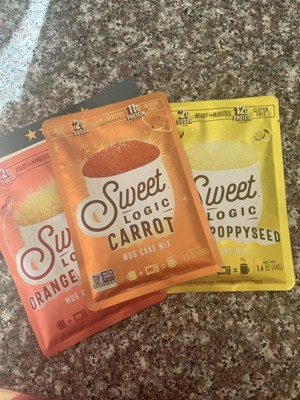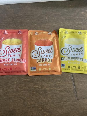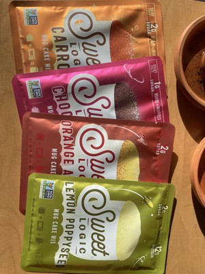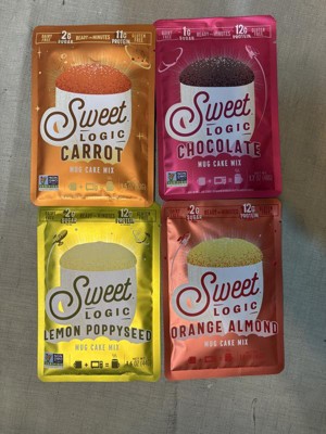 I really enjoyed the sweet logic mug cakes. My husband and I are both trying to watch our gluten intake. So we always opt for something that's made with almond flour. These are really good. The only thing is for someone who is not used to eating almond flour, these can have a mealy kind of texture and taste to them. As far as the flavors go. They were spot on. The orange almond had a really bright orange flavor. The carrot cake tasted like a carrot cake the chocolate was my favorite. And my husband really enjoyed the lemon poppy seed. These are also good for diabetics as it contains allulose and Stevia leaf. And they were really easy to make basically you just pour the contents into a mug add a little bit of butter or oil. I used coconut oil melted only because I prefer coconut oil over butter or regular types of oil. And you put in an egg mix it and pop it in your microwave for 1 minute.