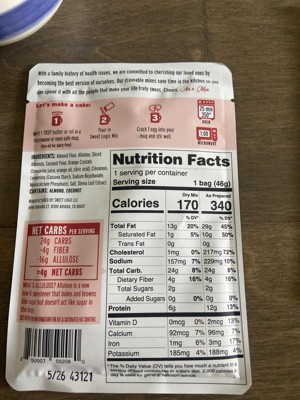 ingredients: allulose, natural almond flour, cocoa powder (processed with alkali), coconut flour, mct oil, mct oil powder [mct oil, tapioca fiber], flax seed powder, leavening (cassava starch, sodium bicarbonate, monocalcium phosphate), salt, stevia leaf extract