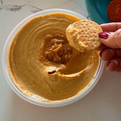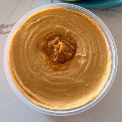 I can't describe what this hummus tastes like, but the carrots and brown sugar make it taste like a tangy, sweet, almost sweet potato casserole. I'm going to add marshmallows on top and see how that does. The Targer app said they were sold out, but you know what? I drove 25 minutes to my local Target and bought the last two. It's worth it to try imo because it tastes different for everyone.