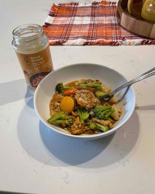 [This review was collected as part of a promotion.] This sauce is so excellent with any rice, veggie and protein dish. We love making veggies, usually green pepper, ground beef or ground chicken all over rice with this sauce. It is excellent and so full of flavor. It is on the sweet side, which is perfect for my family. I add a little sriracha to spice mine up, but the rest of the family eats it plain. I received an incentive to write this review.