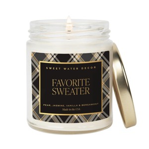 Sweet Water Decor Patterned Favorite Sweater 9oz Clear Jar Candle with Gold Lid
