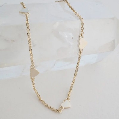 Tiny heart charms perfectly spaced on our classic whisper thin chain. These confetti like pendants catch light in brilliant little flashes with your every move. So lightweight and comfortable to wear, it's easy to add this delicate piece to your everyday style.