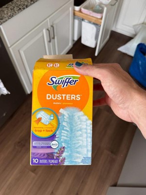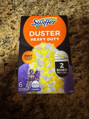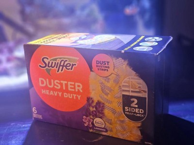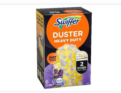 [This review was collected as part of a promotion.] Review of Swiffer Dusters Heavy Duty Lavender Picks up dust, pet hair, and fine particles. It can reach nooks, corners, blinds easily. They are disposable and the lavender scent is a pleasant bonus .