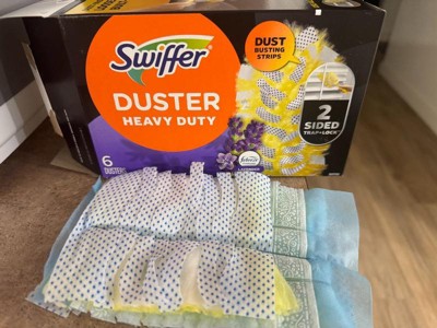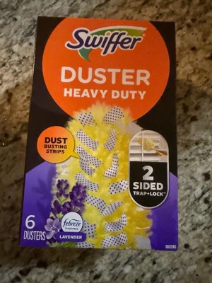 - EASY DUSTINGSwiffer Heavy Duty Dusters have NEW DUST-BUSTING STRIPS to break down layers of built-up dust, and specially coated fibers that reach deep into nooks and crannies to PICK UP 5X more dust than a feather duster*. *after 9 uses