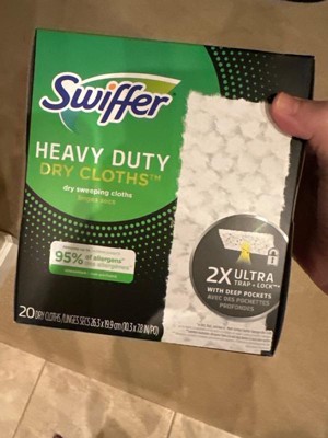 Swiffer Sweeper Heavy Duty Multi-Surface Dry Sweeping Cloths remove up to 95% of allergens* and TRAP + LOCK 2X more dirt, dust, and hair**, allowing you to clean all your hard floor surfaces quickly and easily. Use with your Swiffer Sweeper Dust Mop - the convenient combination of a broom and mop for a quick and easy clean. Experience Lasting Freshness*** with Swiffer Heavy Duty Dry Sweeping Cloths, now in the Fresh, Clean, and Airy Unstopables Scent you love!