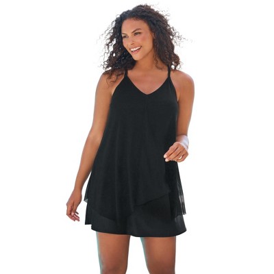 A chic handkerchief hem that adds a touch of flair to our scoop neck tankini. A pretty mesh detail at the front and an empire waist accentuate your curves and provide a flattering fit. Pair with your favorite swim bottoms for full coverage and a stylish look by the water. Built-in power-mesh bra with sewn-in foam cups. Adjustable straps.