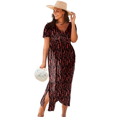 Versatile beach cover up and tank dress in one, perfect for transitioning from the beach to the boardwalk. Stylish sharktail hem adds a trendy touch to your summer wardrobe. Flattering sleeveless A-line shape provides comfort and ease of movement. Measures 45" at the longest point for ample coverage and a chic silhouette. Front and back scoop neck for a relaxed and airy feel. Crafted from a breathable cotton/polyester blend, ensuring durability and comfort. Easy care - just machine wash and wear again. Available in sizes 14/16, 18/20, 22/24, 26/28, 30/32 - designed to fit and flatter plus-size women. Imported.