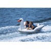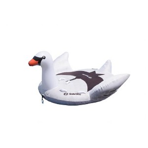 This inflatable float will be a hit wherever you and your friends flock to. This swan towable is made for two riders to glide across the water behind a boat. It is made of heavy-duty nylon cover with a comfortable chafe pad. This will make your summer more enjoyable and adventurous. Get this lay-on swan towable for your family vacation and you will have a ton of fun.