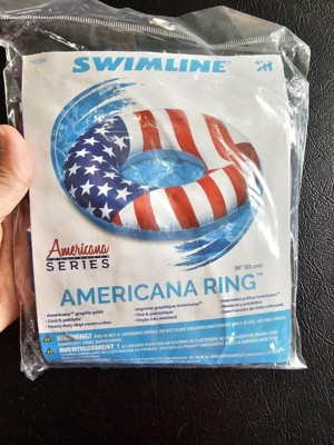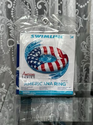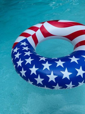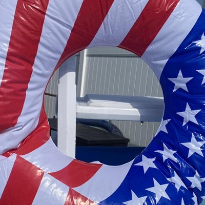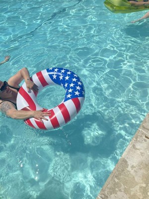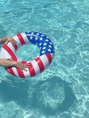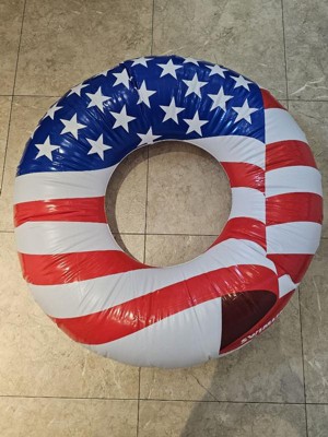 Swimline 90196 Round 36 Inch Inflatable Patriotic American Flag Swimming Pool or Lake Tube Lounger Water Float for Kids and Adults, Red, White, Blue