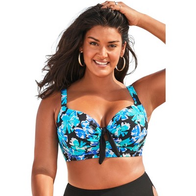 Swimsuits for All Bold Bra Sized Twist Front Underwire Tankini Top Plus Sizes Available
