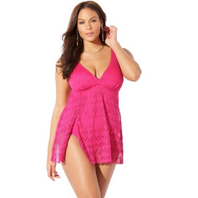 This bandeau swim dress has a beautiful body-skimming silhouette featuring removable, adjustable straps so you can customize the fit and fashion. Ruched detail and a flounce skirt add to its beach chicness. Like all Swimsuits for All swimwear, it’s skillfully designed to expertly shape and flatter your figure..