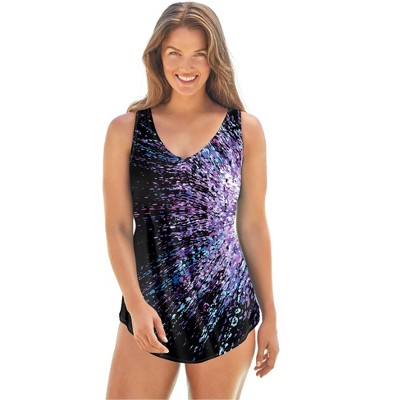 Swimsuits for All V-Neck One Piece Swimsuit - 10, Deep Sea Purple Plus Sizes Available
