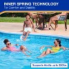 These are the easiest to bring to and from the pool, easiest and fastest to blow up and deflate, comfy to sit in, and work for our whole family, 200+ lb adults to small swimmers. Not great to lay down in but great for sitting and lounging. Great find.