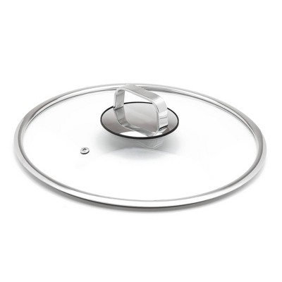 Created to cover a Swiss Diamond Saucepan, glass lid is sturdy and well-constructed. This universal lid can also be used on any similarly sized cookware with its stainless steel lip ensuring a quality fit. Using heat-tempered glass increases the cover's durability and allows the chef to see through it without lifting the lid, preventing boil-overs and overcooking. The adjustable vent in the handle releases or contains steam as the chef opens and closes it. Easily thicken sauces and gravies or prevent vegetables from drying out. It can even be used in the oven up to 260 C (500 F). Avoid immersing a hot lid in cold water. Allow it to cool completely prior to washing.