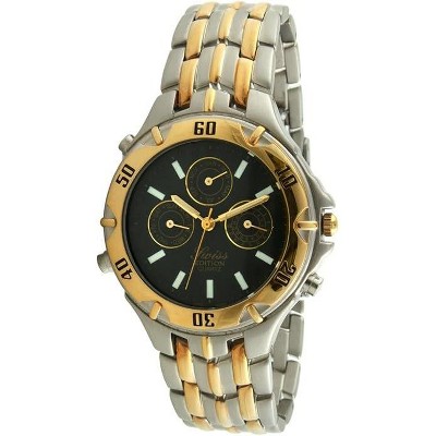 Swiss Edition Men's Bracelet Watch with Two Tone 23K Gold Plated & Silver Sport Bezel