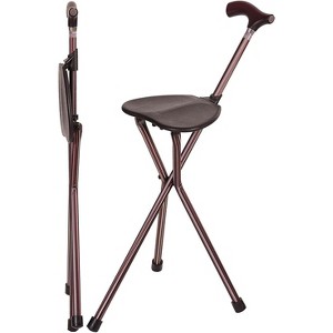 This Best Selling Switch Sticks Folding Walking Cane with Seat is perfect while waiting in lines or walking long distances. This walking stick easily folds and is only 3 pounds to carry or store while traveling on a plane or in a car. It is made of lightweight aluminum and can support up to 220 pounds. The height of 34 inches is ideal for individuals ranging from 5 feet to 5 feet 10 inches. The slip resistant tips are ideal for a variety of surfaces providing support and traction while the ergonomic handle is contoured to reduce hand cramping or muscle fatigue.