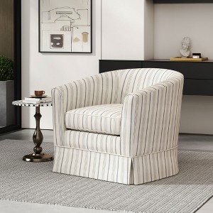 Enjoy comfort and versatility with this swivel barrel chair, perfect for any room in your home. Its spinning design allows you to relax with your favorite book or enjoy VR gaming and movie watching without being stationary. The white/black houndstooth pattern combines traditional elegance with modern simplicity, making it a stylish addition to bedrooms, living rooms, apartments, or offices.