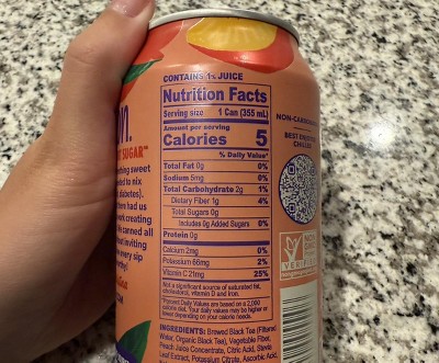 filtered water, vegetable fiber, organic peach juice concentrate, organic black tea powder, citric acid, stevia leaf extract, potassium citrate, ascorbic acid, natural flavors, monk fruit extract' '