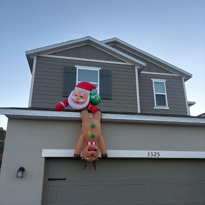 This Santa Claus is hanging on the roof with an elk adds the perfect charm to any one's yard. It is big enough to be seen but small enough to handle. He is the perfect size to add to your holiday decorating the kids love it and who doesn't like to see santa coming to town.