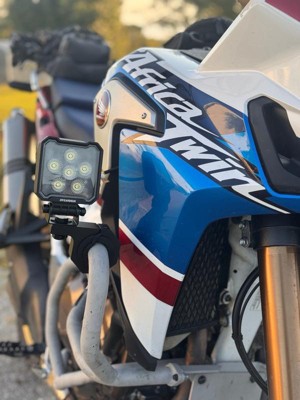 [This review was collected as part of a promotion.] We put the Sylvania Rugged 3.5 inch LED Pod Cube on my husband’s Africa Twin adventure bike and it has been a great upgrade. The beam spread lights up the road evenly and makes a big difference on dark rides. The brightness is strong without being harsh, and it has held up well through rain which shows it really is waterproof. Installation was simple and quick, and the light feels tough and durable even when riding on rough terrain.