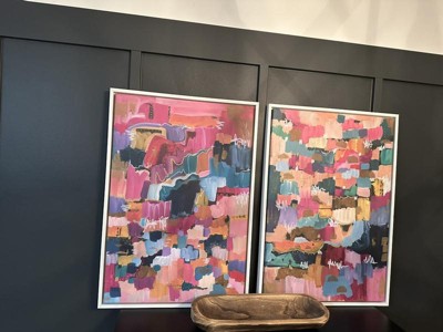 - TRANSITIONAL CANVAS WALL ART: Colorful bright abstract 2 piece set on framed high quality gallery-wrapped canvas. Display dimensions are 18 inches by 24 inches