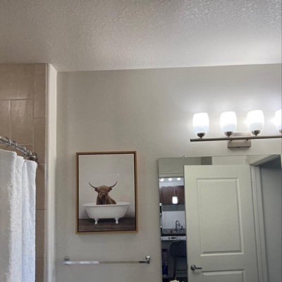 - Transitional Canvas Wall Art: Adorable bathroom animal art on framed high quality gallery-wrapped canvas. Outside display dimensions are 24 inches by 18 inches by 1.6 inches