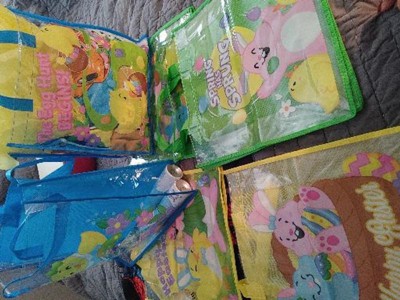 Joyfy 6 Pcs Easter Gift Bags Set, Large Goodie Reusable Tote Treat Rabbit Bunny Bags with Handles for Easter Egg Hunt, Party Favors Supplies