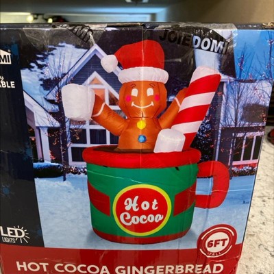- ✨This adorable 6-foot tall inflatable features a cheerful gingerbread man peeking out of a giant hot cocoa mug!