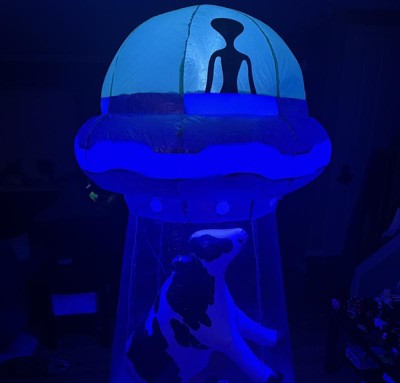 It's a great and very unusual inflatable. You will be a success on my Halloween this year. Add an alien zone so it was a perfect complement. The cow is sold separately. But it's worth buying!