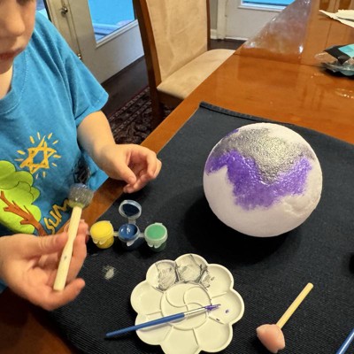 We carefully washed this globe with warm soapy water to remove any mold release that might be coating it, and the paint adheres well (avoid the battery area by tipping it upside down while washing). There are lots of paint colors and the metallic paints are a fun addition. Our 4 and 6 year old boys loved this project, and it is one that keeps paying dividends after the initial fun is over. Makes me want to do one myself!