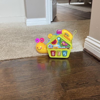 [This review was collected as part of a promotion.] This is so cute. I bought this for my six month old baby and he has been loving it. It takes three AA batteries that are included, and when you turn it on the snail starts to move all over the place. My little guy loves trying to chase after it and the flashing lights grab his attention. There’s tons of buttons to push that have numbers and words and play songs out loud. This is a great quality toy and engages my child for a long time I received an incentive to write this review.