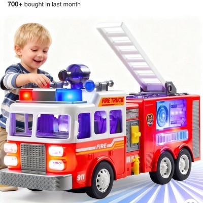 Joyfy Toddler Fire Truck Toy with LED Lights & Real Sirens, Bump and Go Play for Boys and Girls,Birthday Christmas Gift for Kids 3 4 5 6 Year Olds