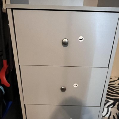 The Systembuild Beckett Closet Storage Organizer makes it easy to tidy up your messy closet. Don't just throw your clothing in your drawers or on your closet floor when you have 3 adjustable clothing rods to hang your blouses, sweaters, slacks or skirts. The clothing rods modify to fit your reach-in closet from 28" - 36" wide and secure your storage system with a tight fit. Each side panel has pre-drilled holes so you can move your clothing rods up or down to fit your needs. The center tower has 3 open shelves to display your sweaters, handbags, hats, jewelry and more and the lower half of the tower is designed with 3 drawers for additional accessory or clothing storage. Finished in a laminated light gray, this particleboard and metal tube construction measures to be 76.73"H x 73.07-89.1"W x 15.71"D. Adding to the security of this storage system is the provided wall anchor kit that stabilizes the tower and assures the customer that their items will stay exactly where they need to be. Two adults are recommended for the proper assembly and installation of this Closet Organizer.