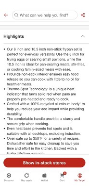 - Thermo-Spot Technology® is a unique heat indicator that turns solid red when pans are properly pre-heated and ready to cook.
