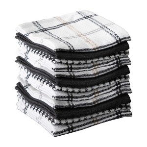 - ATTRACTIVE DESIGN. Set includes 12 kitchen dish cloths with vividly colored coordinating weave design and includes 3 checked pattern kitchen wash cloths 6 striped kitchen wash cloths and 3 solid-colored scrubbing dish cloths.