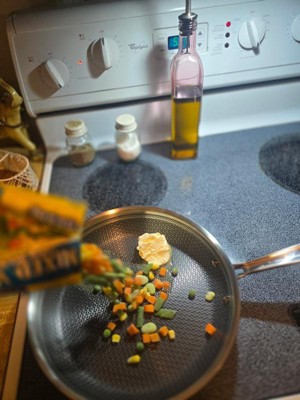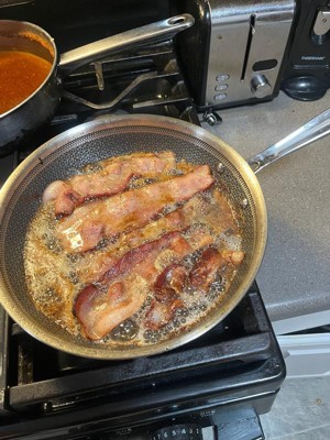 [This review was collected as part of a promotion.] I've recently received the T-fal HybridMesh Stainless Steel 10.5 Inch Frypan, in exchange for a review and I am beyond impressed. This frypan is a game-changer. The hybrid mesh design combines the best of both worlds: the durability and even heating of stainless steel with the convenience of non-stick cooking. This unique surface has elevated my cooking experience, making it versatile for a variety of dishes, from perfectly seared steaks to delicate omelets. The 10.5-inch size is ideal for preparing meals for small to medium-sized families, providing ample space without being cumbersome. The stainless steel construction ensures even heat distribution, so I never have to worry about hot spots or uneven cooking. The ergonomic handle is comfortable to grip and stays cool to the touch, even during extended cooking sessions. Cleaning this frypan is a breeze, thanks to its innovative design. It has quickly become my go-to cookware piece, combining functionality and style seamlessly. If you're looking for a reliable, high-quality frypan that delivers exceptional performance, I highly recommend the T-fal HybridMesh Stainless Steel Frypan!