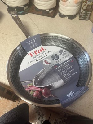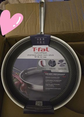 T-fal HybridMesh stainless steel cookware combines innovation and performance for everyday cooking. The heavy-duty tri-ply stainless steel construction ensures long-lasting durability and even heat distribution across all cooktops, including induction, gas, and electric. The cast riveted stainless handles provide a secure, comfortable grip. The HybridMesh cooking surface features a unique stainless steel pattern that’s perfect for searing, and is metal utensil safe so you can cook with confidence and convenience. This stainless steel cookware is also dishwasher safe and oven safe up to 500 °F, delivering lasting performance and versatility. Elevate your kitchen with our 12-inch frying pan, a durable essential in your pots and pans collection.