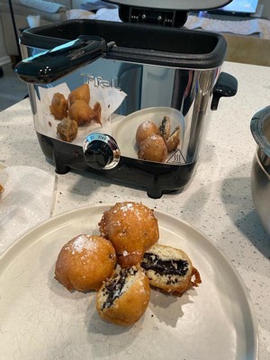 [This review was collected as part of a promotion.] This mini deep fryer exceeded my expectations. I’ve never used a deep fryer before and this was very simple and easy to use. Directions are adequate to get started. I deep fried Oreos and they turned out fantastic! The compact design makes it perfect for storing in cabinets or on shelves without taking up too much space. Has minimum and maximum lines to not overfill it. Easy cleaning. The one downside is the temperature control is only a knob so it’s not very exact, but for casual deep frying of snacky foods this works as expected.