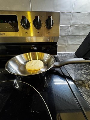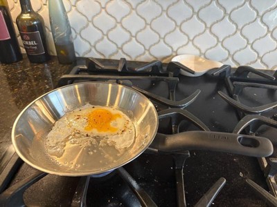 [This review was collected as part of a promotion.] I am completely unimpressed with this small TFal frying pan. As a user of stainless steel pans for the past 10 years, I found that this pan did not do a good job evenly controlling the heat on my gas stove. As you can see in the picture of me cooking an egg the temperature was so uncontrolled that the egg yolk broke on its own while I have moved away from using stainless steel pans to the hybrid hex clad pans this reminds me of why I would not go back.
