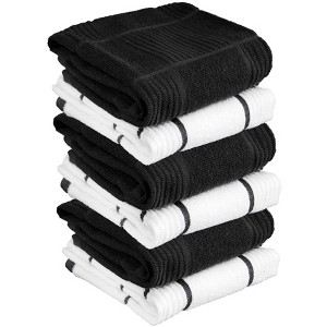 Spectacular in their simplicity T-fal Woven Solid & Check Parquet Kitchen Towels (6-pack) provide top-of-the-line results no matter what the task. These finely crafted kitchen towels feature a parquet design that allows for moisture-wicking and proper airflow that ensures quick-drying and plush 100% cotton construction offers a gentle touch when cleaning more delicate surfaces and objects. Towels are considerably sized measuring 16 in. by 26 in. (40 cm by 66) which allows for convenient double duty as sink-side drying mats for pots pans and other kitchen appliances. T-fal's charming Solid & Check Parquet towels are available in subtle and spirited color options to match your personal taste. Machine washable.